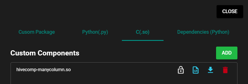 Press [Add] to register the so file for the custom component you have already built.