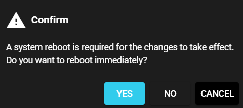 Select [Yes] in the confirmation dialog to restart the system to apply the changes.