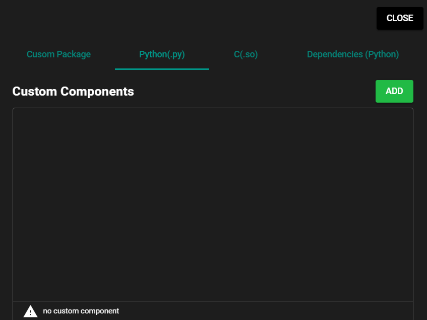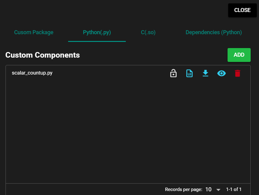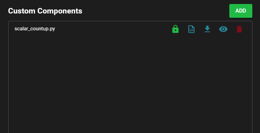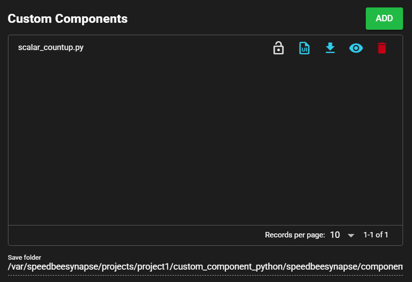 A component base can be added by registering the *.py file directly from the screen, provided that there are no errors. For instructions on how to register files, see Using Custom Components.
