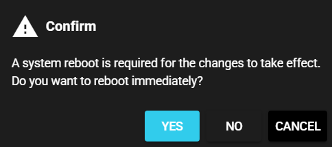 Select [Yes] in the confirmation dialog to restart the system to apply the changes.