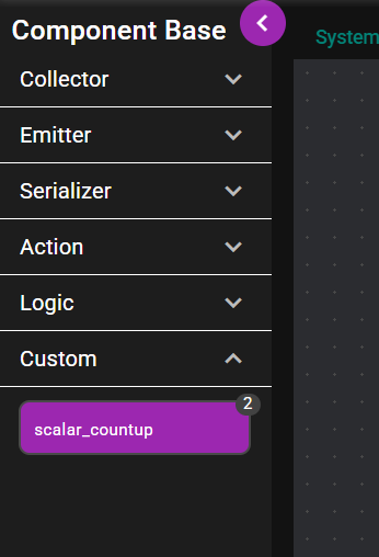 Tag | This adds a tag to the component. Use "collector," "emitter," "serializer," "action," or "logic" to specify under which component base to place the component. If this member is omitted, the component is placed under Custom. |