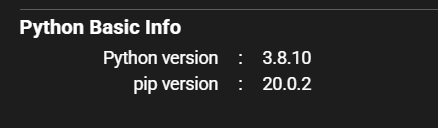 The version of Python that runs the custom component is displayed in [Python version] under [Python Basic Info].