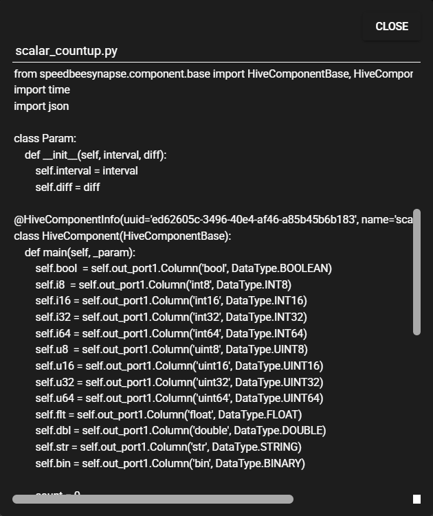 read_and_log.pyThis component receives data from the input port and outputs it to string columns and logs.