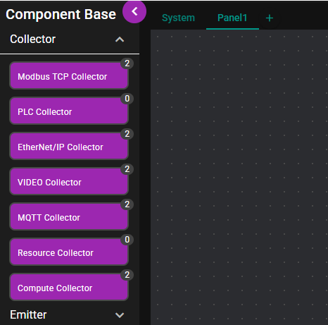 | ⑥ | Component | This is the component registered to the panel. Note: The component is the module group that performs functions such as data collection, processing, analysis, and emission. |