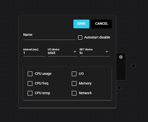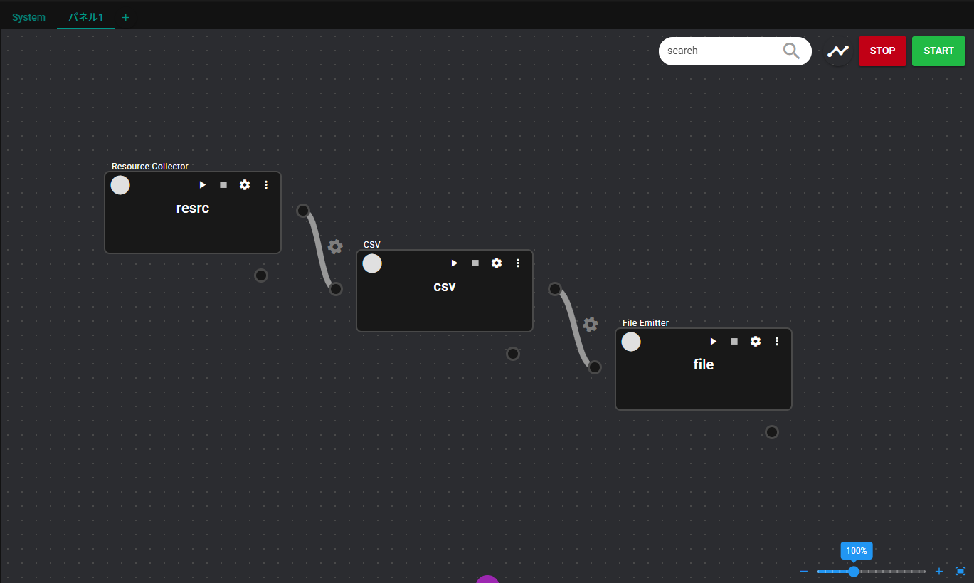 | ⑪ | SYSTEM Port | This port outputs system-related data. Note 1: Clicking this displays the data flowing to the port on the data monitor. For detail, see Data Monitor. Note 2: Right-clicking this allows users to configure settings. For detail, see SYSTEM Port. |