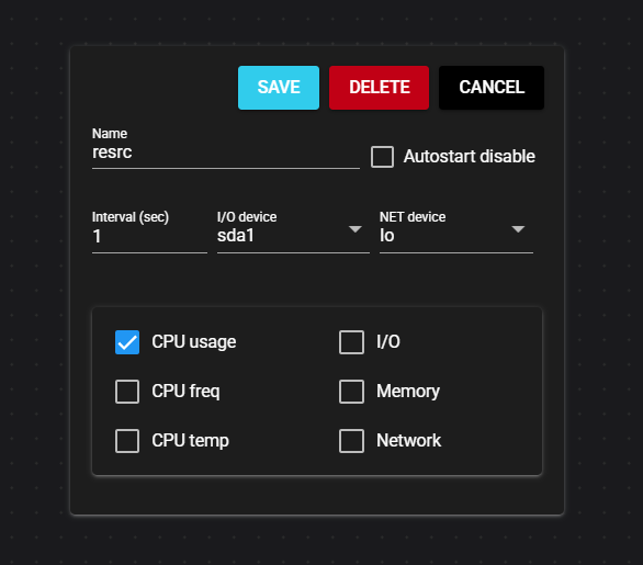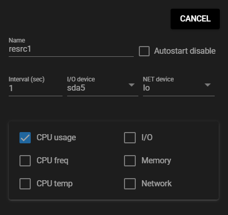 | ⑥ | Start button | Clicking this starts all components on the panel for which Autostart Disabled is OFF. |