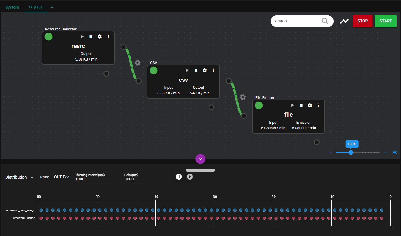 | ① | IN Port | This port accepts data input. Note: Clicking this displays the data flowing to the port on the data monitor. For detail, see Data Monitor. |