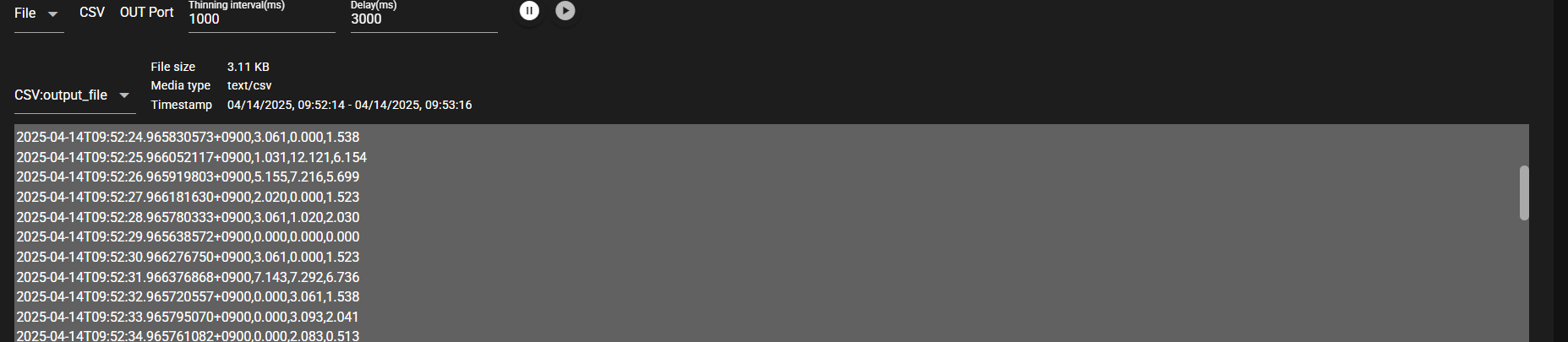 - Data is registered based on the time elapsed from the start to the value of timestamp_ms. In the example of the above CSV, the data is registered at 1,000, 2,000, and 3,000 milliseconds rom the start.