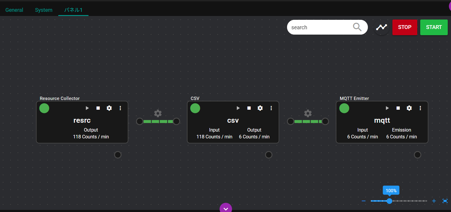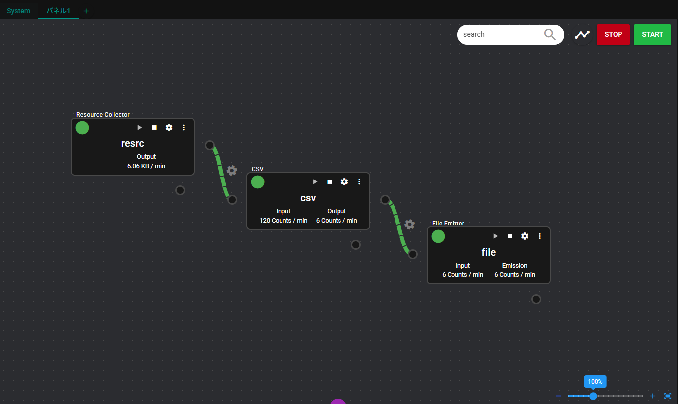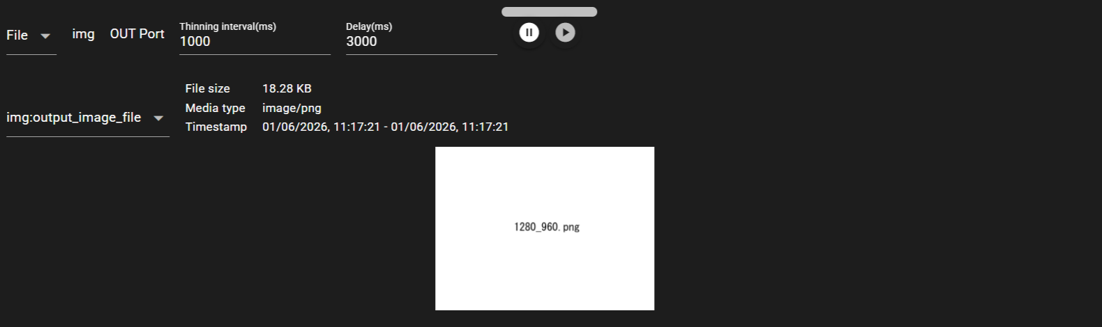 | ① | IN Port | This port accepts data input. Note 1: Clicking this displays the data flowing to the port on the data monitor. For detail, see Data Monitor. Note 2: Right-clicking this allows users to configure settings. For detail, see IN Port. |
