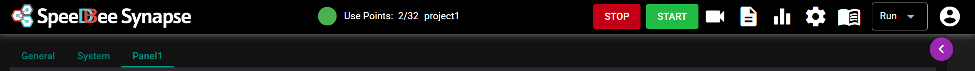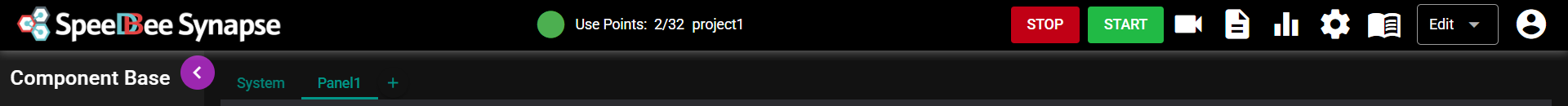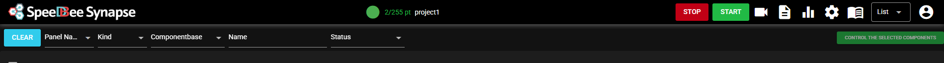 | ③ | Stop button | Clicking the stop button stops all components registered in SpeeDBee Synapse. |