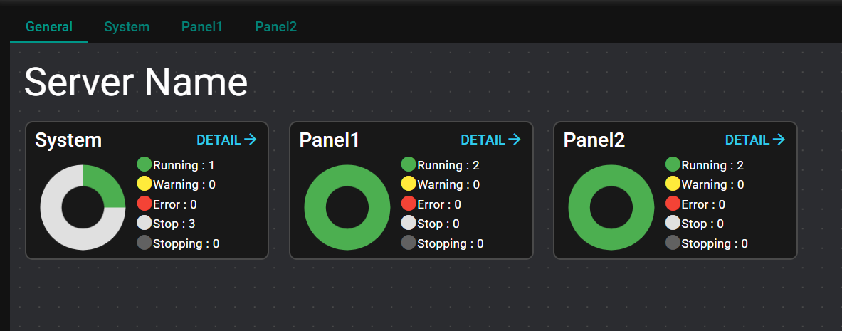 | ③ | Status lamp | Colors corresponding to the component operation status are displayed. For detail, see Status List. |
