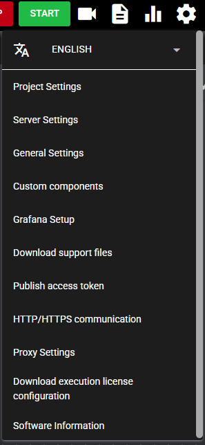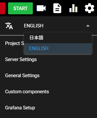 Click the Start button to start. The component status light turns blue when the system is running while the simulation mode is ON.