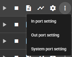 | ⑦ | Menu icon | Clicking this icon displays a menu that provides various options, such as port settings, logs, and the status timeline for the component. |
