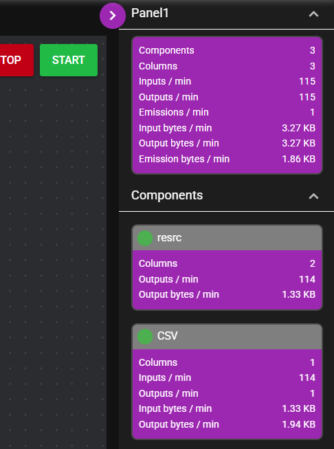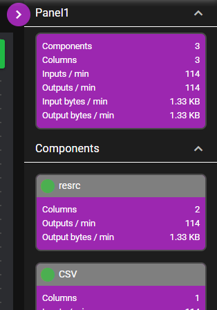 | ⑨ | Data volume monitor | This displays the volume of data a component is processing. |