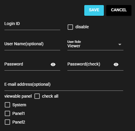 | ② | Add panel icon | By clicking this icon, a new panel can be added. |