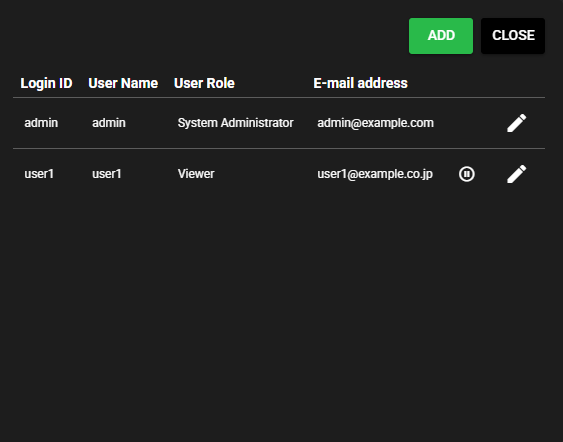 | List Mode | Settings for all components can be configured on the list screen. Only users with the role of the system administrators or managers can use this function. |