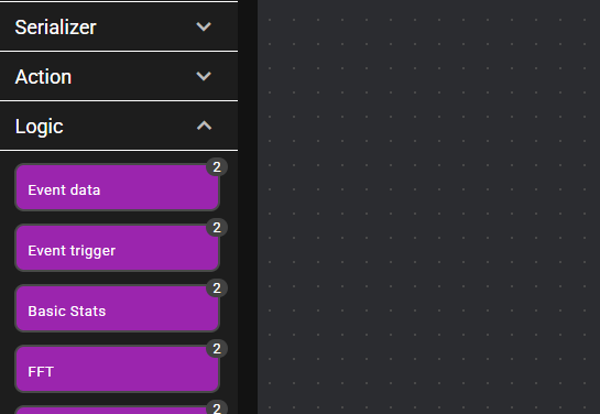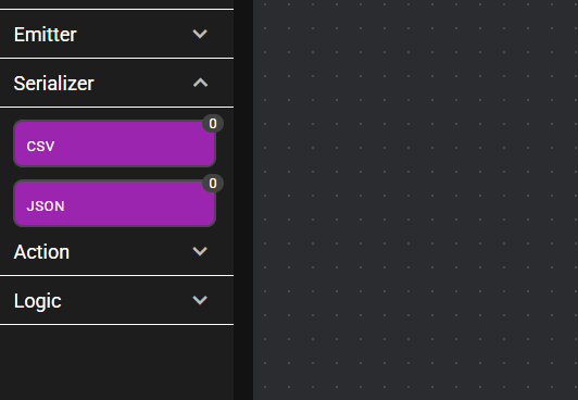 Drag the CSV serializer icon from the left menu and drop it on the panel.