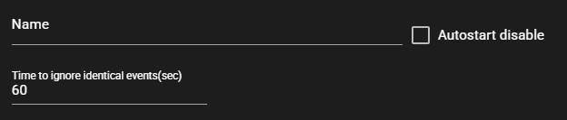Note: The same name as another component name cannot be used.Autostart disable Select ON to disable the Autostart of the component. Time to ignore identical events(sec) Enter time to ignore the identical events -
