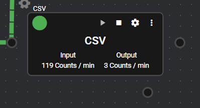 With the component running in this state, the CPU usage collected by the resource collector is processed into a CSV file by the CSV serializer only when it exceeds 20%.