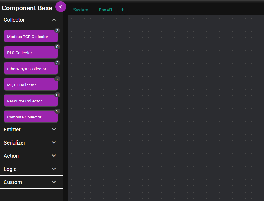 Press the "Collector" indicator in the left menu to display the collector list.