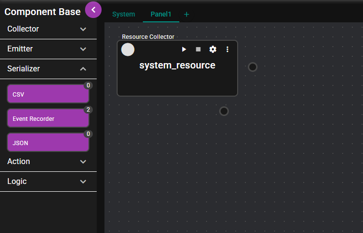 Drag "Resource Collector" and drop it on the panel.