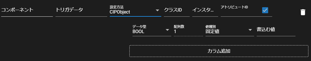※設定方法がCIPObjectの場合のみ入力可能です。アトリビュート設定 アトリビュートIDを入力する時にチェック