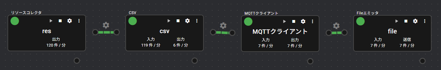| 説明 | MQTTブローカーと接続し、双方向でデータの送受信を行うコンポーネントです。 入力ポートからデータを受け取ると、そのデータを指定されたトピック名でパブリッシュします。 また、指定されたトピック名をサブスクライブし、受信したデータを出力ポートから出力します。 |