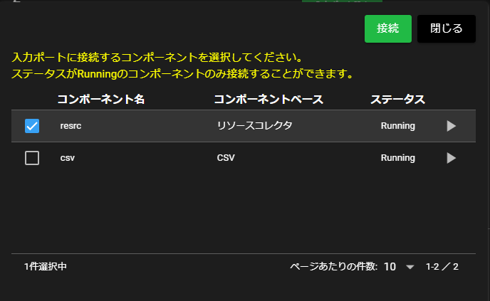 コンポーネントの出力ポート設定ダイアログを開きます。