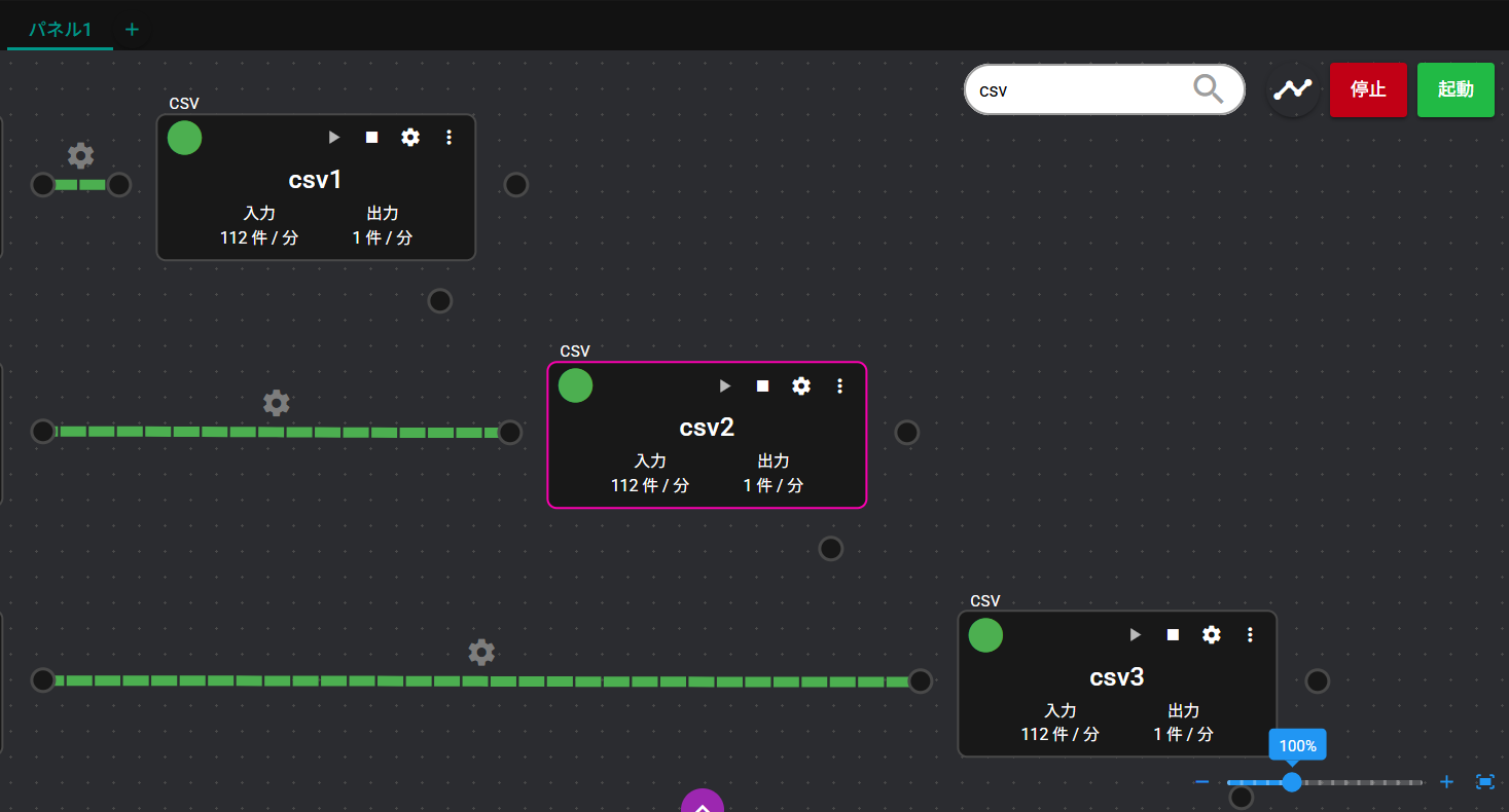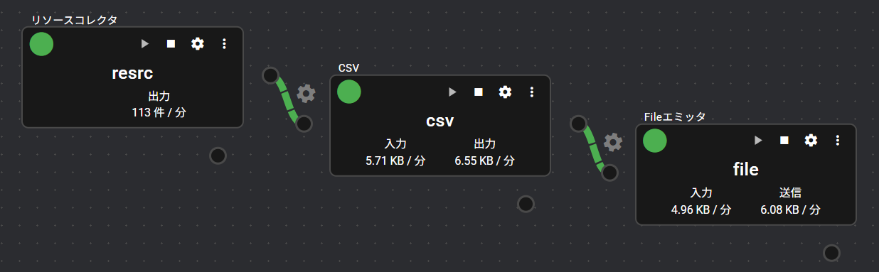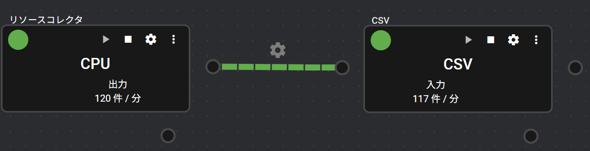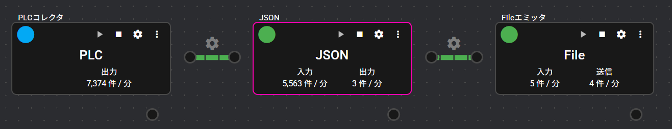 | ① | 入力ポート | データの入力を受け付けるポートです。 ※クリックすると、ポートに流れているデータがデータモニタに表示されます。詳細は「データモニタ」をご覧ください。 |