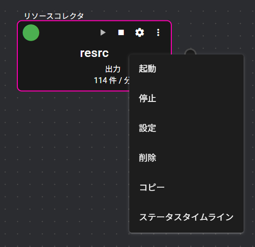 | ⑦ | メニューアイコン | クリックすると、コンポーネントの各種ポート設定、ログ、ステータスタイムライン等のメニューを表示します。 |