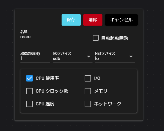 | ⑥ | 起動ボタン | クリックすると、パネル上の、「自動起動無効」がOFFのコンポーネントがすべて起動します。 |