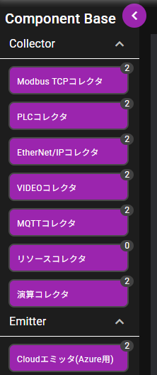 | ① | 開閉アイコン | クリックすることで、コンポーネントベースの表示・非表示を切り替えることができます。 |