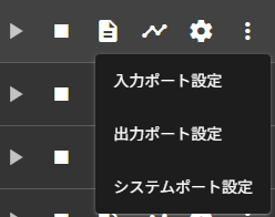 | ⑪ | システムポート | システムに関連するデータを出力するポートです。 ※クリックすると、ポートに流れているデータがデータモニタに表示されます。詳細は「データモニタ」をご覧ください。 |