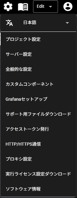 | Edit Mode | データ収集フローの設定などを行います。権限がシステム管理者・管理者のユーザーのみ利用できます。 |