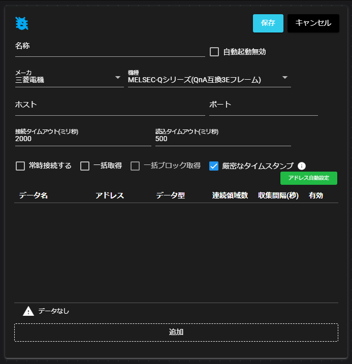 実際の機器との通信によるデータ収集は行われません。