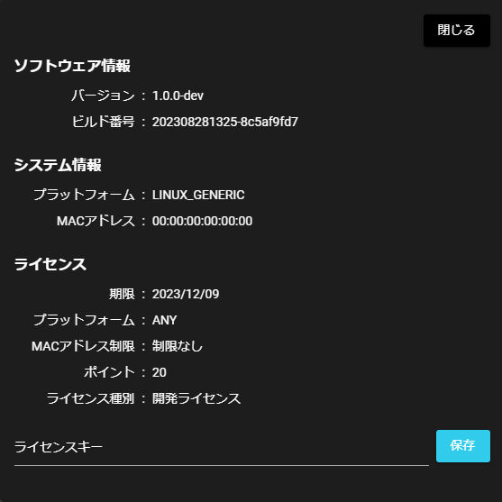 | ① | 使用ポイント数 | 登録されたライセンスのポイント数と、使用されたポイント数が表示されます。 |
