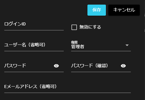 | ⑪ | ユーザー管理アイコン | クリックすると、ユーザー管理のメニューが表示されます。 ※詳細は「ユーザー管理」をご覧ください。 |