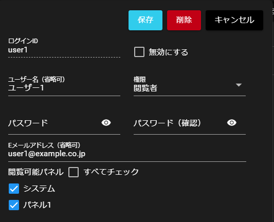 | ② | パネル追加アイコン | クリックすると、新しいパネルを追加することができます。 |