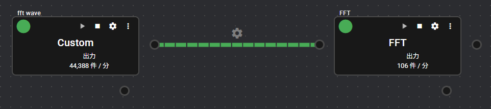 入力ポートからデータを受け取り、そのデータにFFT解析を行った結果を別データとして出力します。